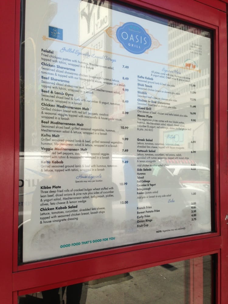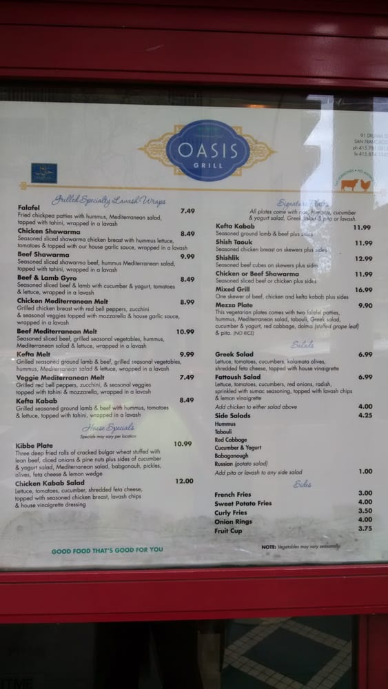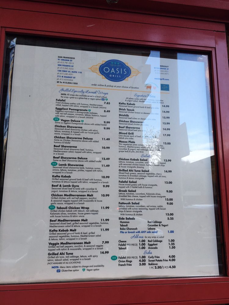 Oasis Grill, located in San Francisco, offers a delightful Middle Eastern-Mediterranean-Halal menu with a focus on fresh and healthy options. Customers rave about the beef and lamb gyro, falafel wraps, shawarma, hummus, and Greek/Mediterranean dishes. The friendly staff and family-run atmosphere add to the dining experience. Despite some minor issues with the Greek salad, the wraps are highly praised for their flavor and generous portions. The casual setting is ideal for a quick lunch or takeout, although seating is limited. The diverse menu caters to both meat lovers and vegetarians, with vegan options available. Overall, Oasis Grill is a go-to spot for authentic Middle Eastern cuisine in the Financial District, with loyal customers returning for favorites like falafel wraps and shawarma.